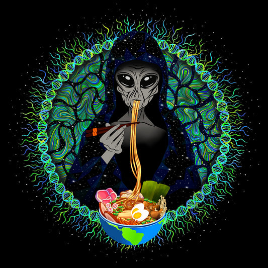 Alien Ramen |Shroomaniac| Psychedelic and Psytrance Alien UFO T-Shirt